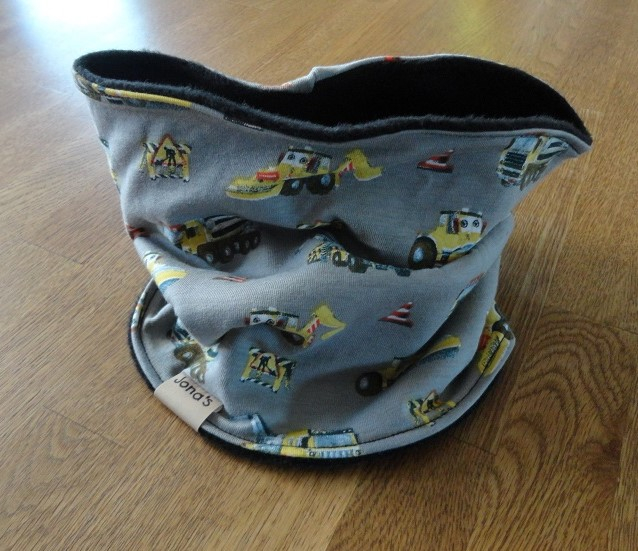 Der handgemachte, selbstgenähte Loop Baufahrzeuge ist aus hochwertigem Baumwolljersey der sich aus 95% Baumwolle und 5% Elasthan zusammensetzt mit kuscheligem Innenfutter. Alle Nähe sind mit einem speziellen Jerseystich versehen, so dass die Dehnbarkeit der Stoffe nicht beeinträchtigt wird. Die verarbeiteten Stoffe sind zertifiziert nach Öko-Tex Standard 100. Waschbar ist der Loop bei 40 Grad und sollte schonend getrocknet werden.