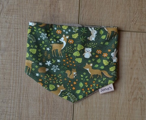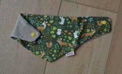 Das Halstuch Wald grün aus Baumwolljersey ist zweilagig genäht mit Innenstoff aus Musselin.