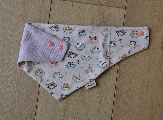 Das Halstuch Tiere rosa ist doppellagig genäht aus weichem Baumwolljersey aus 95% Baumwolle und 5% Elasthan.