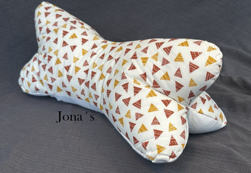 Der Leseknochen / Relaxknochen Dreiecke ist aus Baumwollstoff genäht und mit Stopfwolle gefüllt.