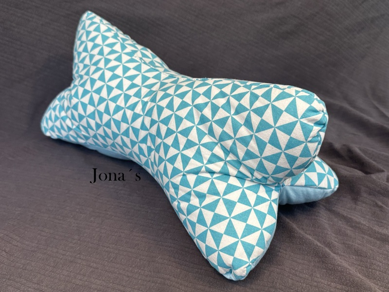 Der Leseknochen / Relaxknochen Türkis-Weiß ist aus Baumwollstoff genäht und mit Stopfwolle gefüllt.