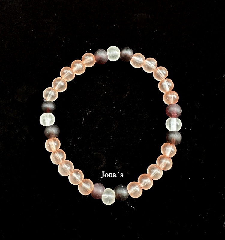 Das Armband rose ist auf einem Gummiband gefädelt für ein einfaches an- und ausziehen.