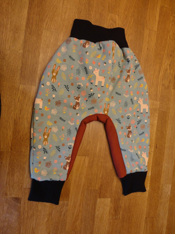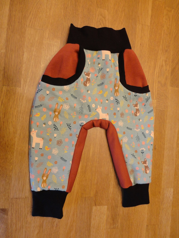 Die warme Pumphose Reh in Größe 86/92 ist doppellagig genäht aus weichem kuscheligen Baumwoll-Sweatstoff und hochwertigem Baumwolljersey mit fablich abgestimmten Bündchen und einer großen Kängurutasche. Die verarbeiteten Stoffe sind zertifiziert nach Öko-Tex Standard 100 und sind weich und elastisch. Der Bündchenstoff lässt sich auseinander ziehen und geht dann wieder in seine Ursprungsform zurück. Alle Stoffqualitäten setzten sich aus 95% Baumwolle und 5% Elasthan zusammen. Die Nähe sind mit einem speziellen Jerseystich versehen, so dass die Dehnbarkeit der Stoffe nicht beeinträchtigt wird. Waschbar ist die Pumphose bei 40 Grad und sollte schonend getrocknet werden.